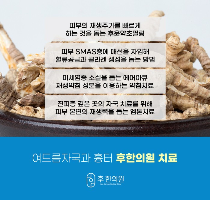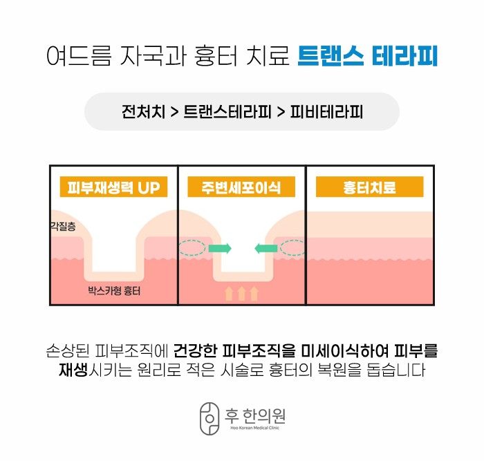 여기에 염증 관리와 함께 피부에 남아있는 브라운, 블랙, 버건디 등의 색소침착, 움푹 들어간 흉터 관리, 트랜스테라피 흉터 관리, 혈관확장 및 모공확장, 굳어진 모공 등의 피부고민을 바로잡아 드리고자 합니다. 돕다.
